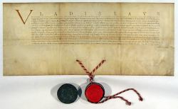 King Ladislaus IV Vasa (Władysław IV Waza, 1595-1648) granting the city Mayor and the city councillors of Krakow the right to impose fees on the merchandise brought into the city by retailers. Half of this income was to cover the erection of the city walls, moats and other city needs and the other half to be paid to the councillors as the payment for their work of city officials