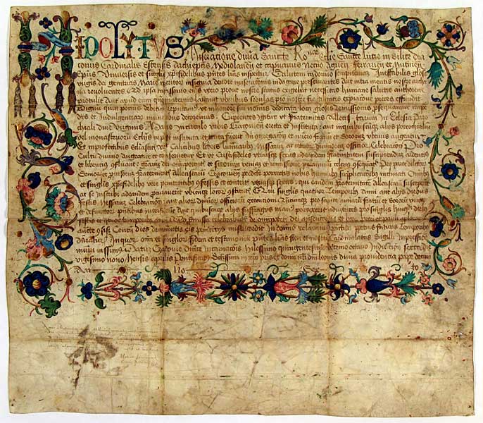 Hipolit d’Este, kardynał - diakon kościoła Św. Łucji w Silice, arcybiskup mediolański i kapuański, biskup agrieński, ferrarski i modeński udziela 100 dni odpustu braciom i siostrom Bractwa Śledziarzy przy kościele Najświętszej Marii Panny w Krakowie